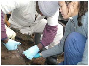 The year of 2007 has been another very challenging year for llamas and alpacas here in North Carolina. The extremely mild winter has allowed coccidia to survive and attack camelids in our state with vengeance. This parasite can cause severe gastrointestinal damage which may result in anemia, slow weight loss, and eventually death if not properly treated.