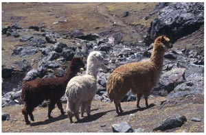 There are 4 species of camelids native to the South American continent. Llamas (Lama glama) and Alpacas (Lama pacos) are domesticated species. The Guanaco (Lama guanicoe) and the Vicuna (Vicugna vicugna) are wild species. Llamas come in many colors and wool types; the wool of all four species can be spun but the wool of the llama is the least desirable. The llama is a domestic animal, primarily developed as a beast of burden. The alpaca is also a domestic animal but guanacos and vicunas are not domesticated and exportation of both species has been tightly controlled until recently. Vicunas are currently on the endangered list due to heavy hunting for their fine fiber, which is worth more on the world market than silk.